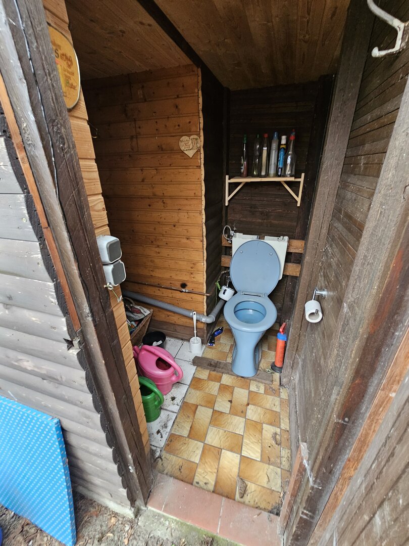 Strom- und Wasseranschluss sind vorhanden, ebenso eine Toilette,