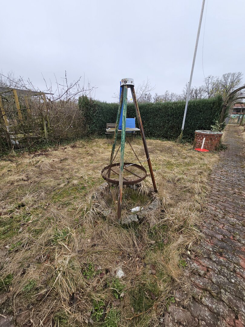Zusätzlich verfügt der Garten über eine vorhandene Toilette sowie einen Kamin,