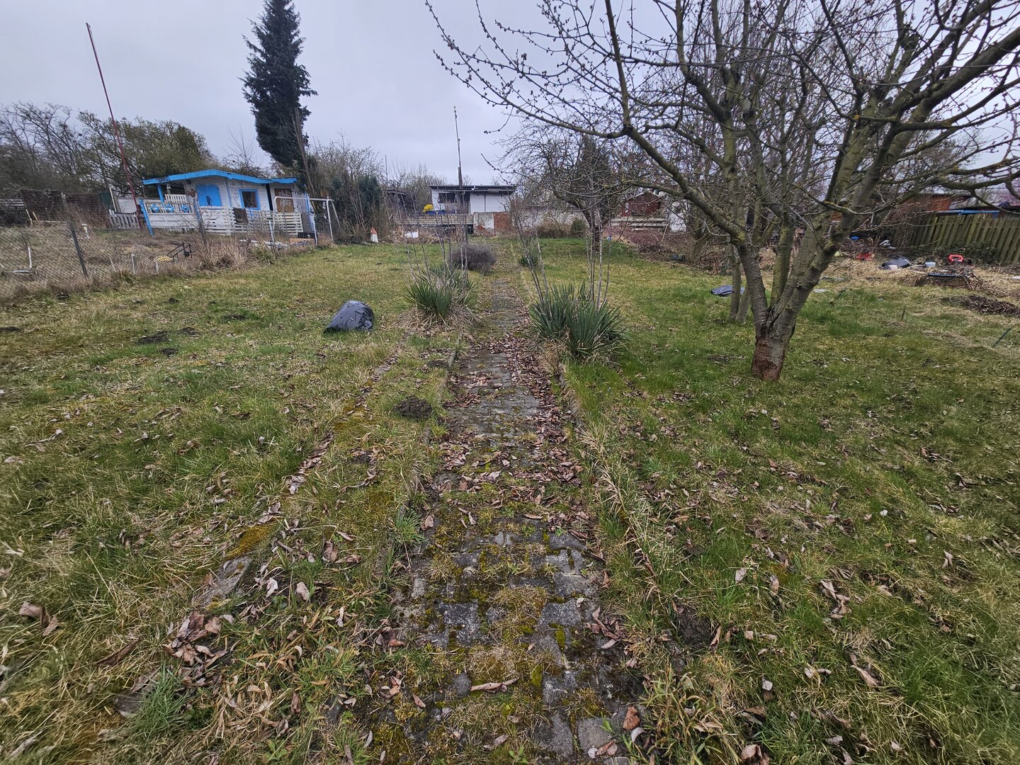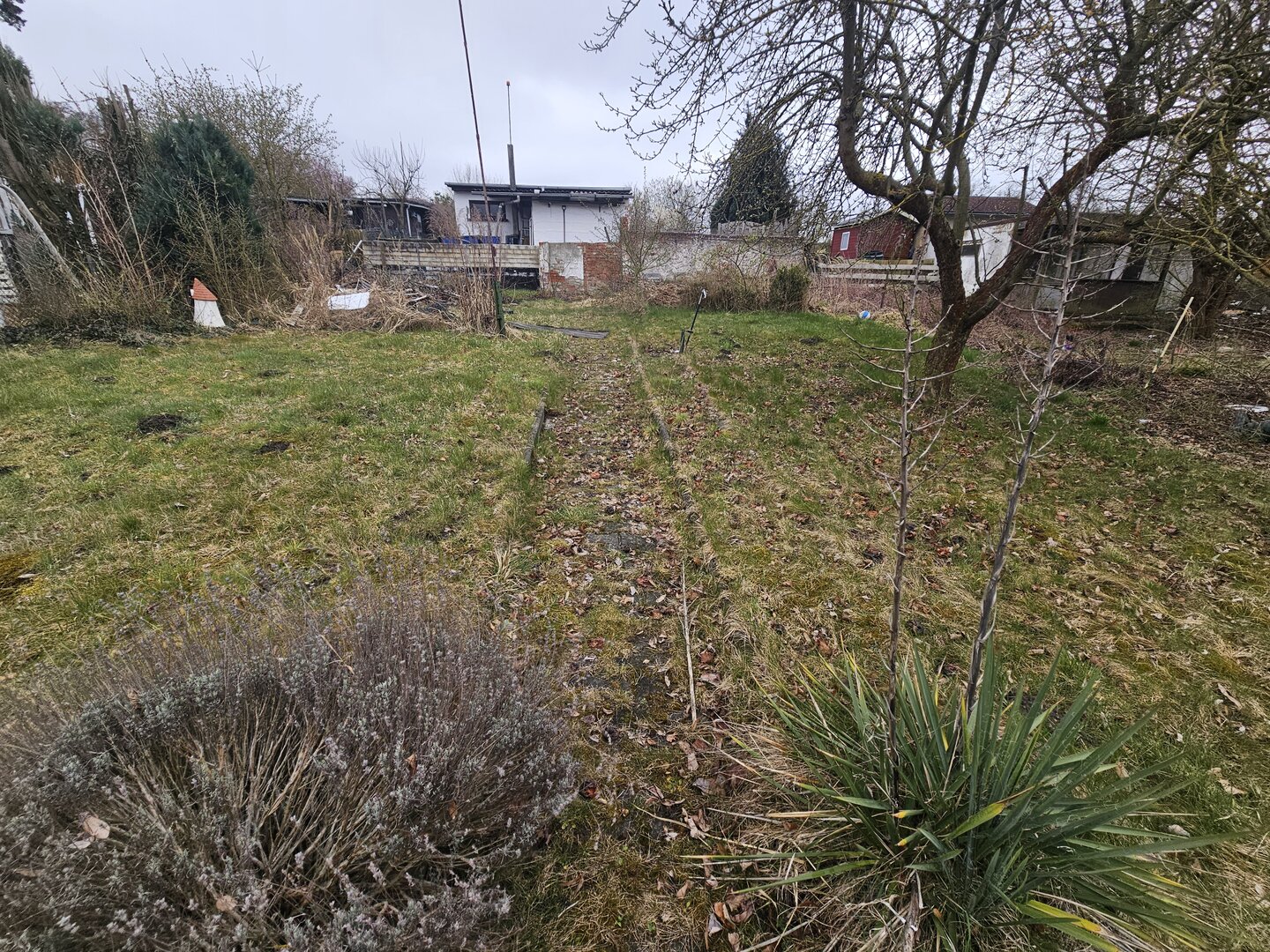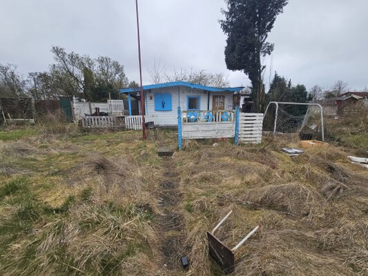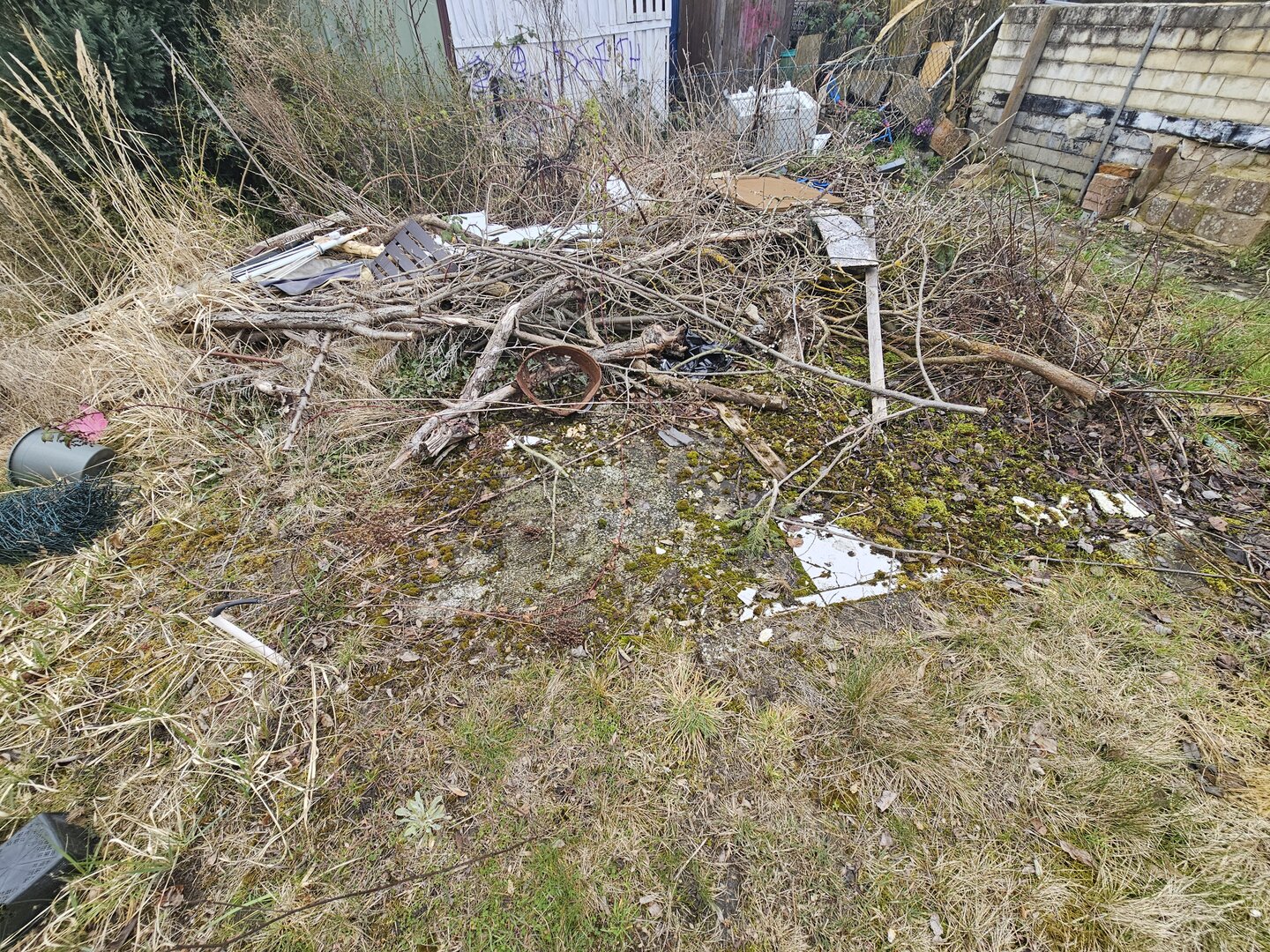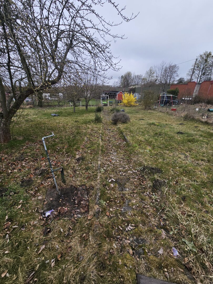 Die Parzelle ist derzeit etwas verwildert und vermüllt, sodass zunächst Aufräum- und Pflegearbeiten erforderlich sind.