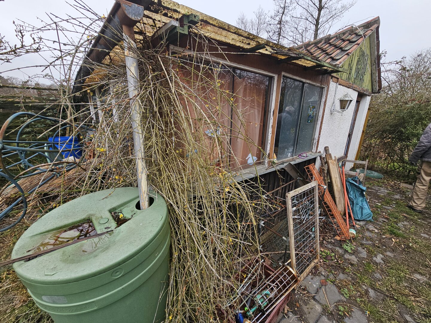Die vorhandene Gartenlaube ist stark renovierungsbedürftig und eignet sich derzeit