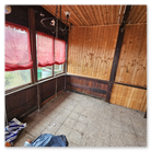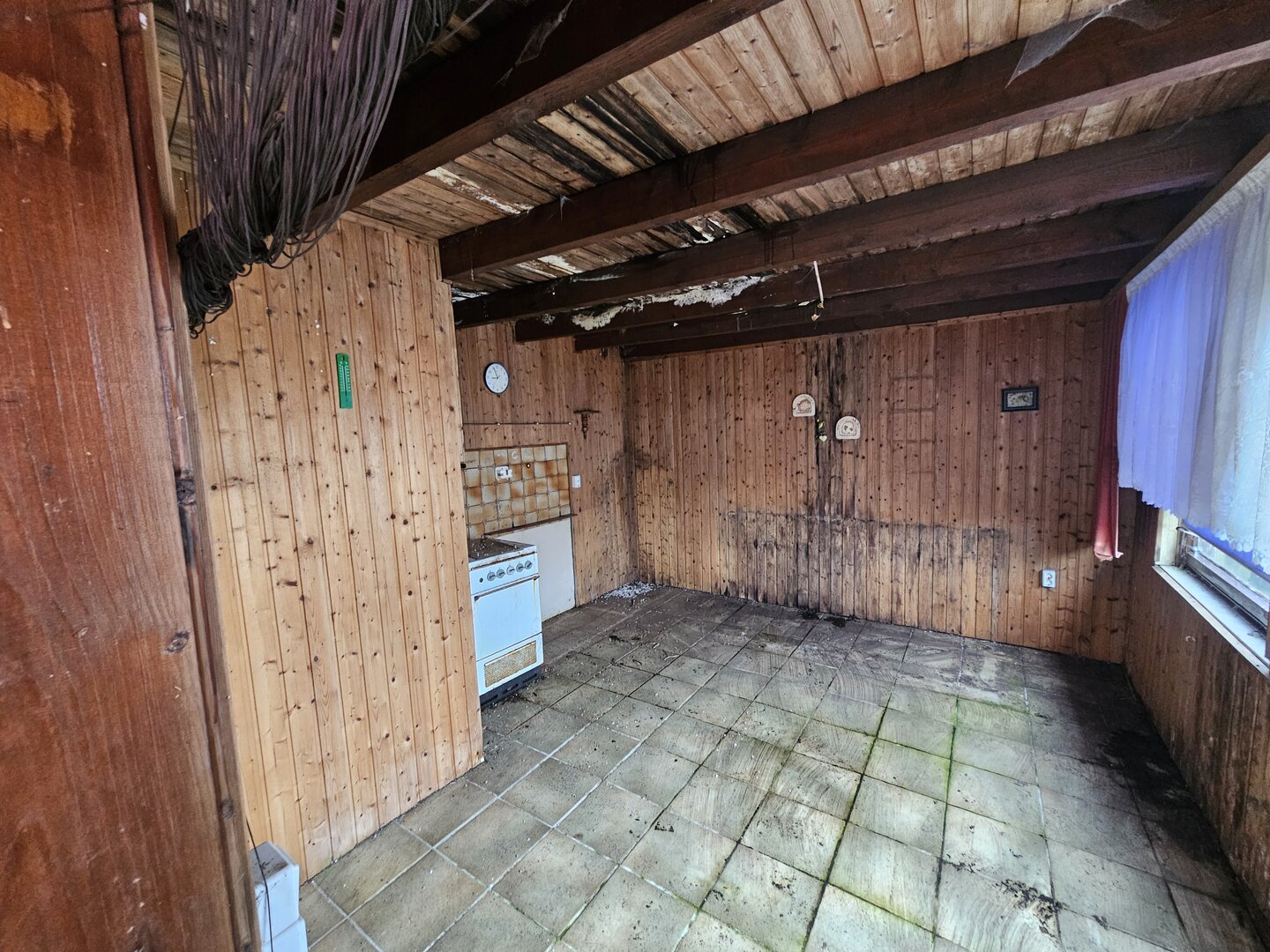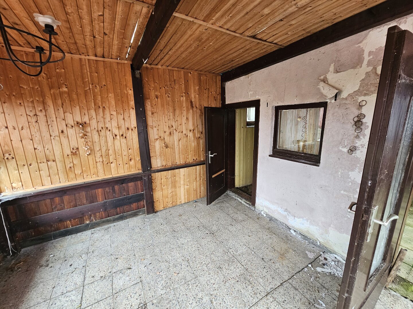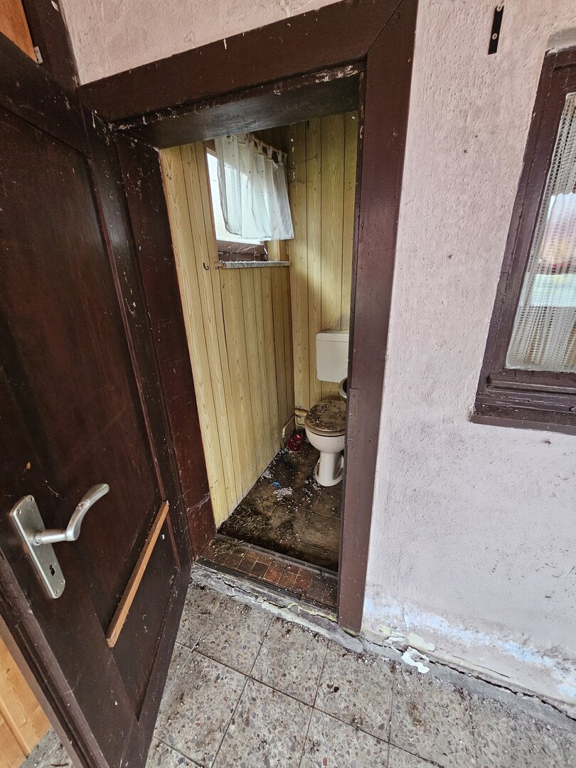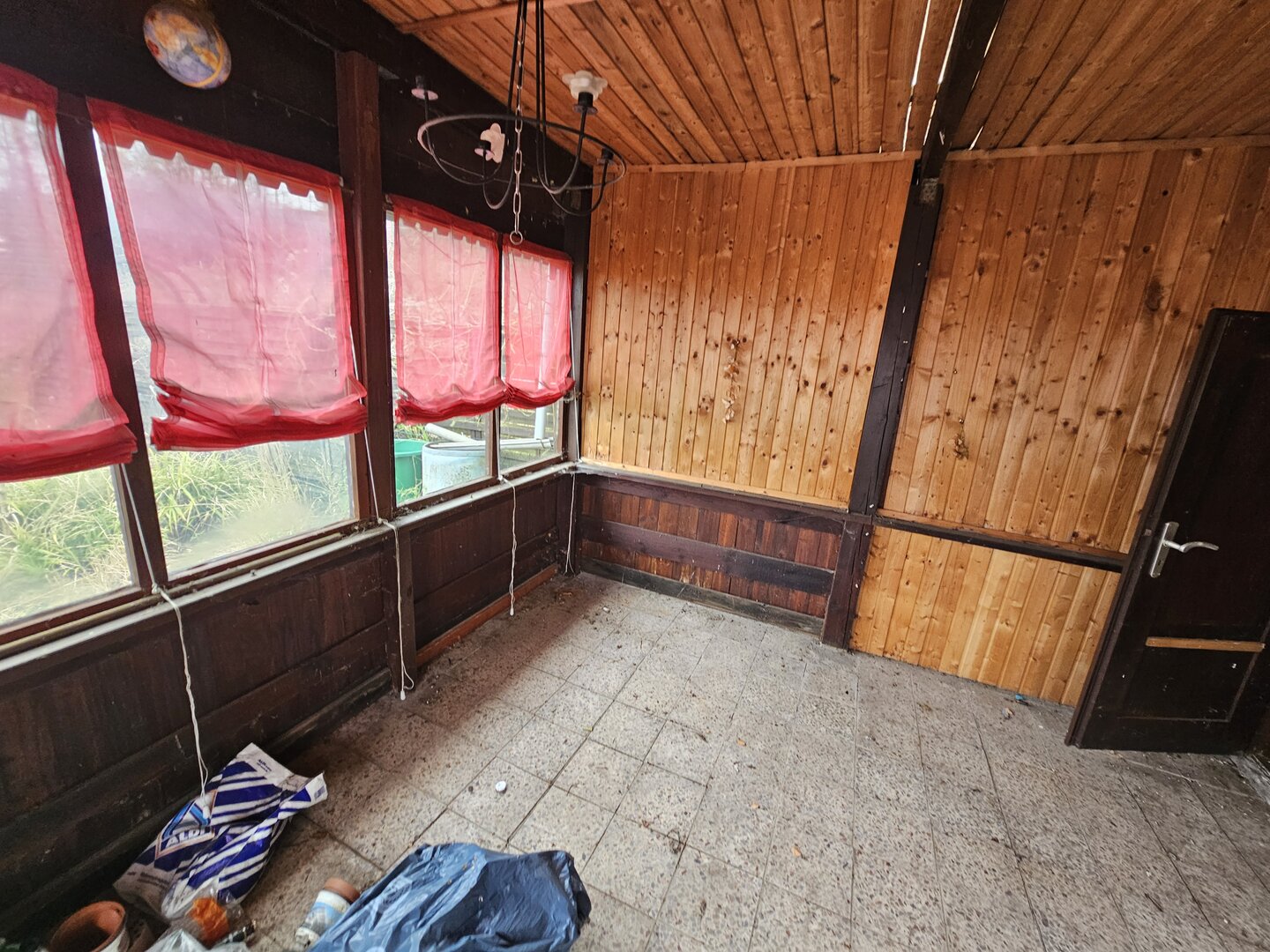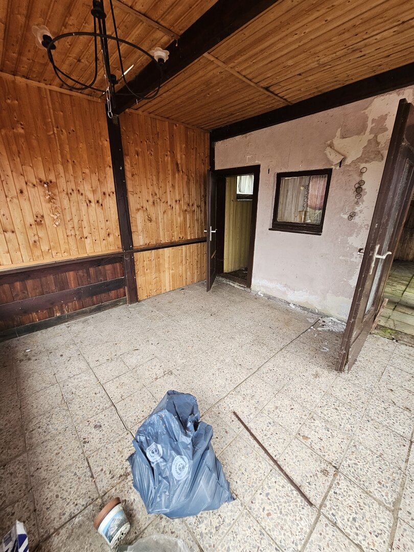 Die Laube ist renovierungsbedürftig, das Dach ist teilweise undicht und sollte instandgesetzt werden.