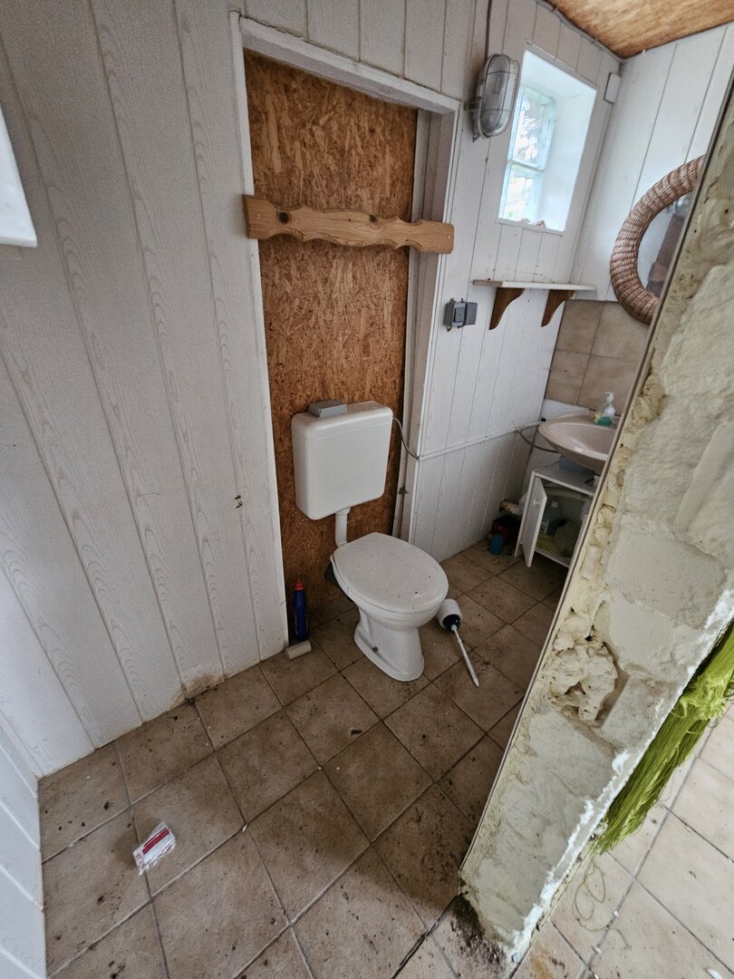 Eine vorhandene Toilette sowie Strom- und Wasseranschluss runden die vorhandene Ausstattung ab.