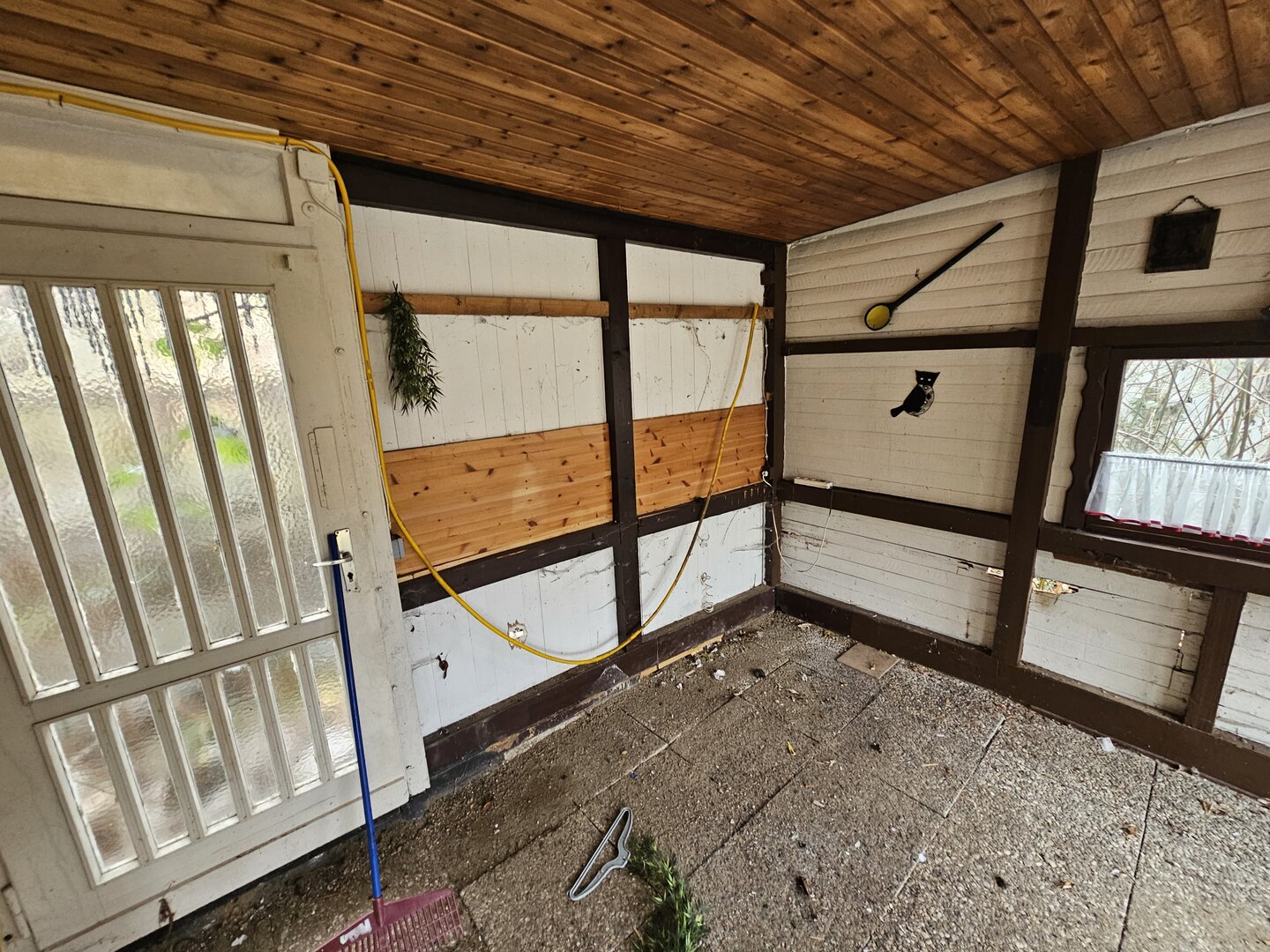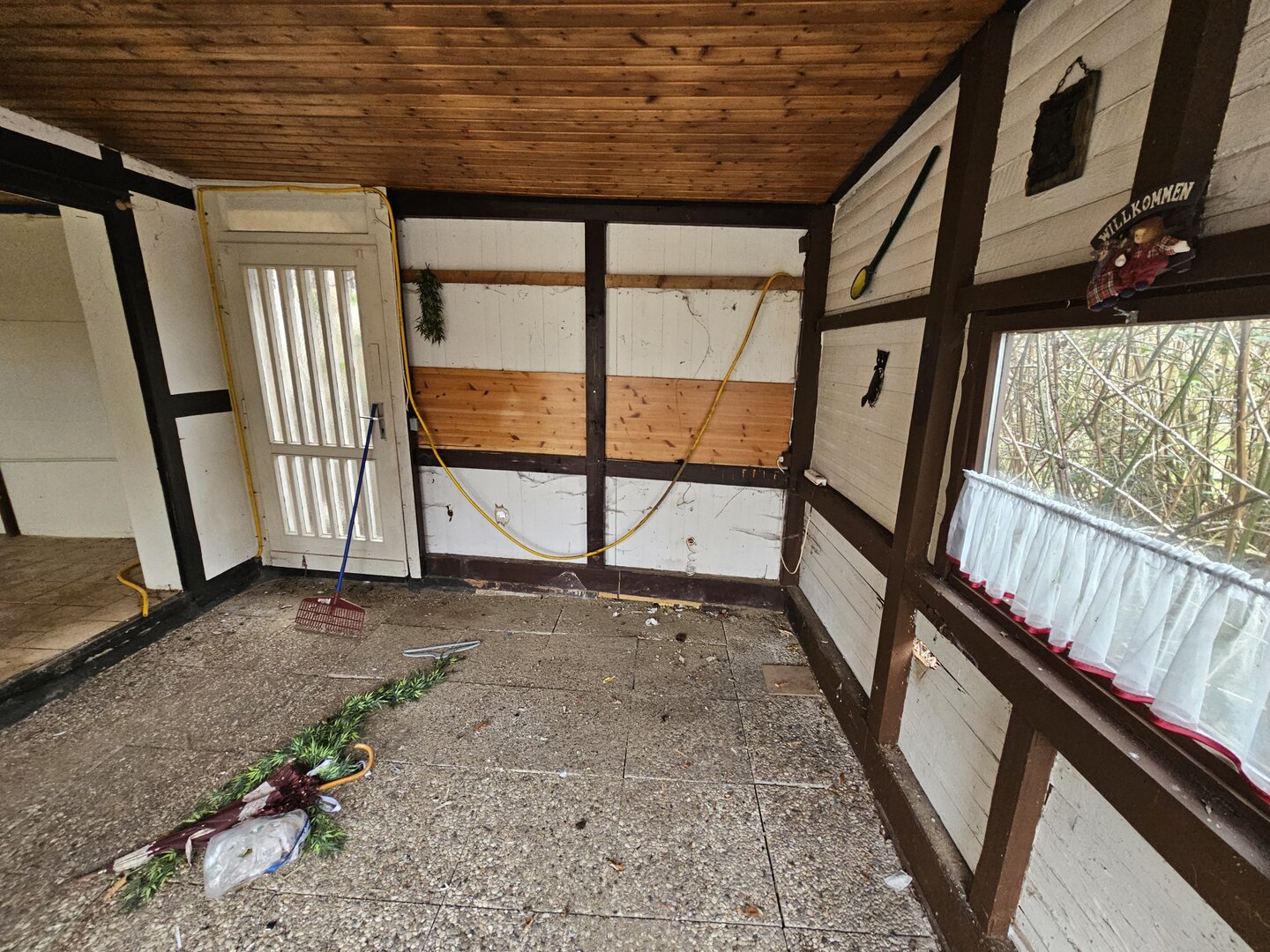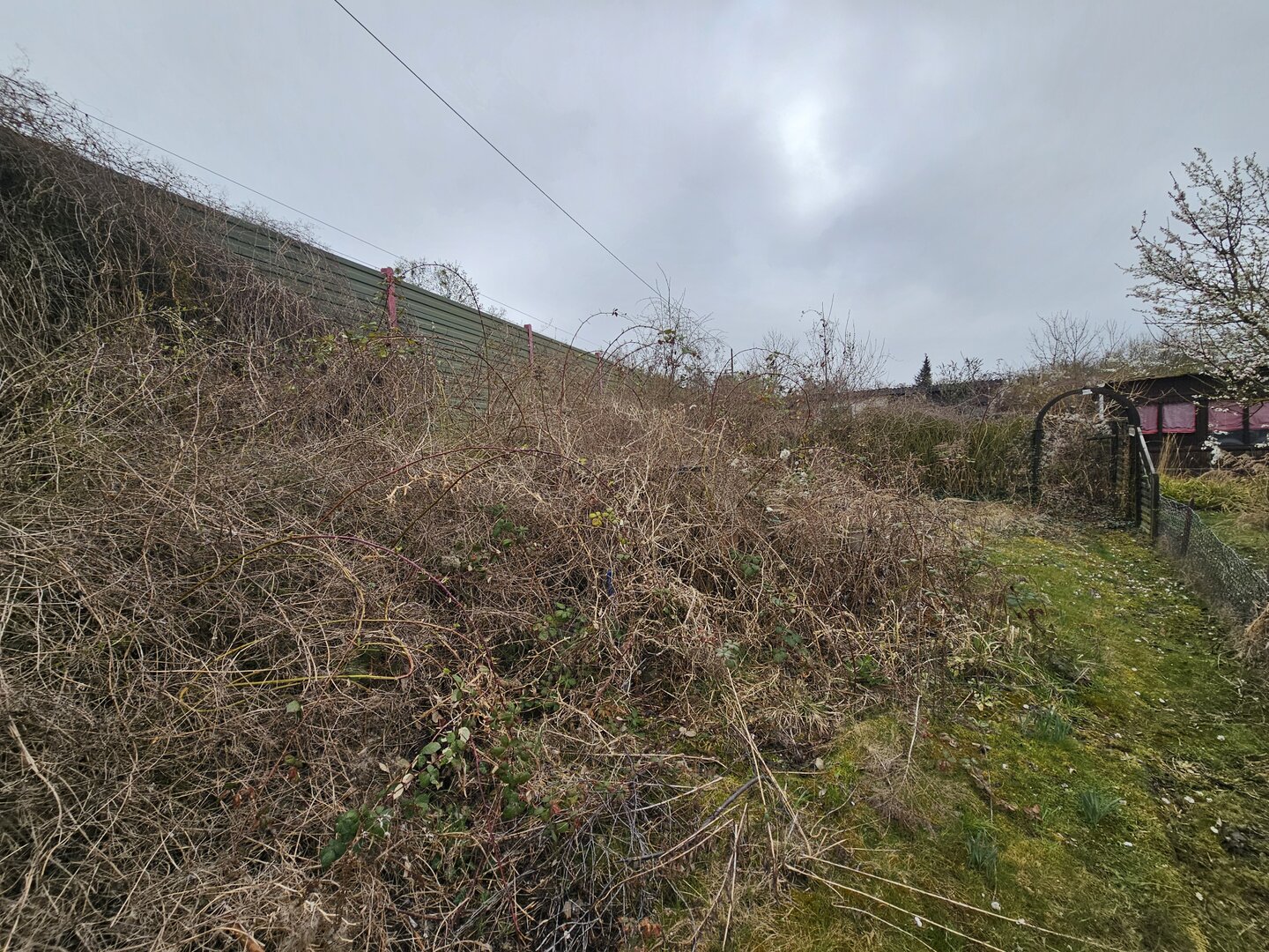 Die Gartenfläche selbst ist aktuell stark verwildert und vermüllt, sodass hier ein deutlicher Arbeitsaufwand erforderlich ist.