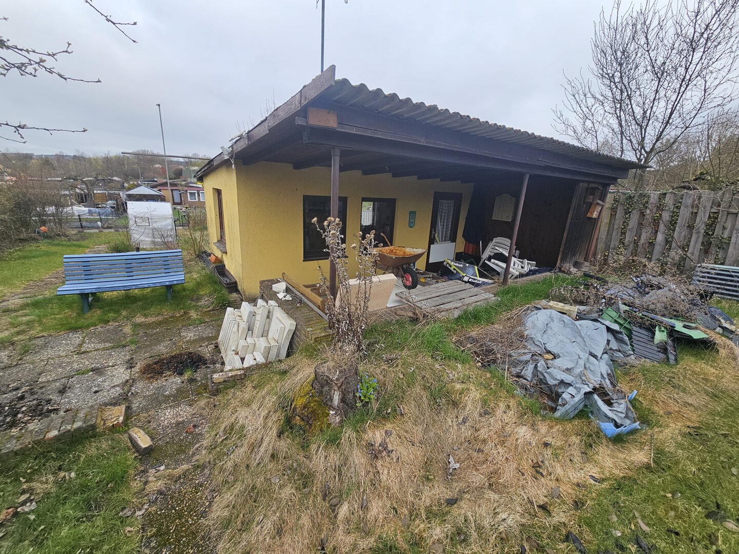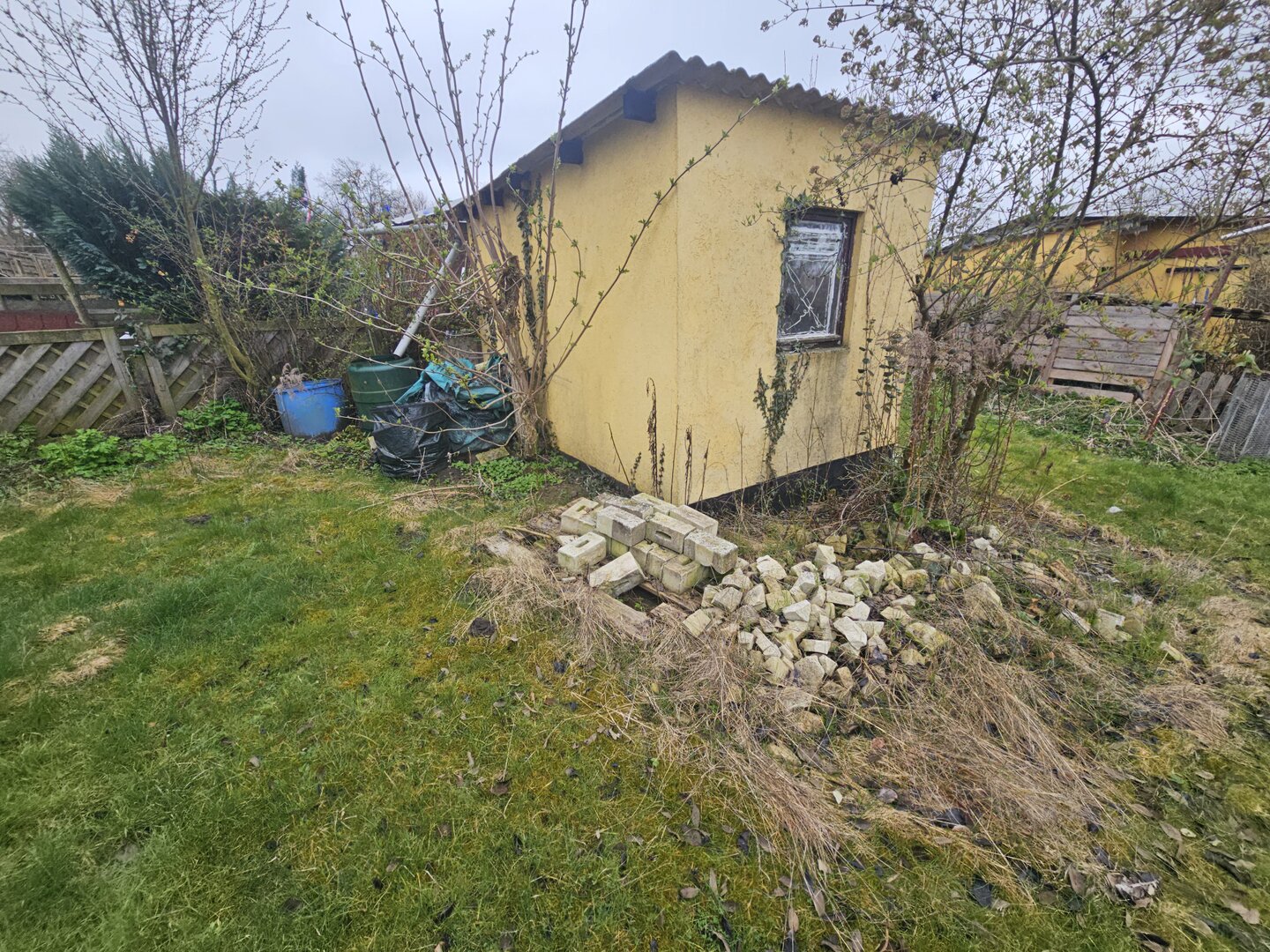 Die Parzelle ist derzeit leicht verwildert und noch relativ stark vermüllt.